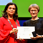 Im Rahmen der Eröffnungszeremonie des Weltkongresses der Pharmazie und pharmazeutischen Wissenschaften in Glasgow sind auch zwei deutsche Pharmazeuten mit dem FIP Fellowship durch die FIP-Präsidentin Carmen Peña (Foto links) ausgezeichnet worden: Professor Dr. Marion Schaefer (Foto rechts) und Dr. Dietrich Steinbach. Bei dieser Ehrung des Weltverbands der Apotheker (FIP) werden Persönlichkeiten aus der Pharmazie mit besonderen Führungsqualitäten, außerordentlichen Arbeiten im Bereich der pharmazeutischen Wissenschaften oder Praxis, die zu deren Fortschritt beigetragen haben sowie sich für den FIP engagiert haben, honoriert.