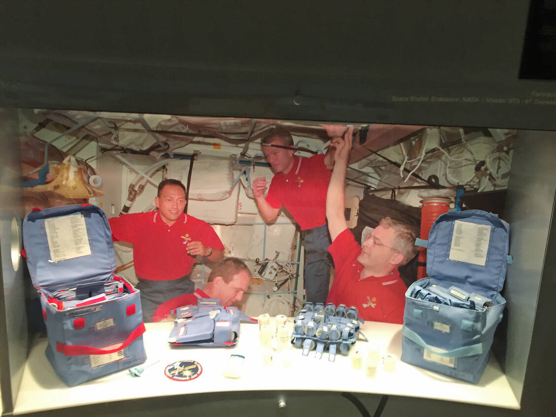 Auf der Internationalen Raumstation ISS (International Space Station) wurde neben der pharmazeutischen auch die medizinische Ausrüstung stark ausgeweitet. Dort ist man technisch für Zahnbehandlungen, Wiederbelebungsmaßnahmen und Operationen gut gerüstet. Die verschiedenen medical-kits sind mit unterschiedlichen Farben gekennzeichnet und decken eine sehr breite Palette möglicher Beschwerden und Erkrankungen ab.