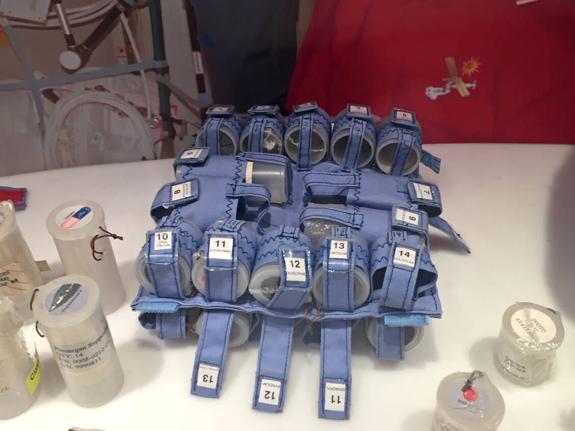 Eine weitere kleine Medizintasche befand sich im Lunarmodul Eagle (Adler). Sie enthielt vier Tabletten mit Stimulanzien, acht gegen Durchfall, zwei Schlaftabletten, vier gegen Schmerzen, zwölf Aspirin, zwei Flaschen mit Augen- und Nasentropfen und Kompressen.
