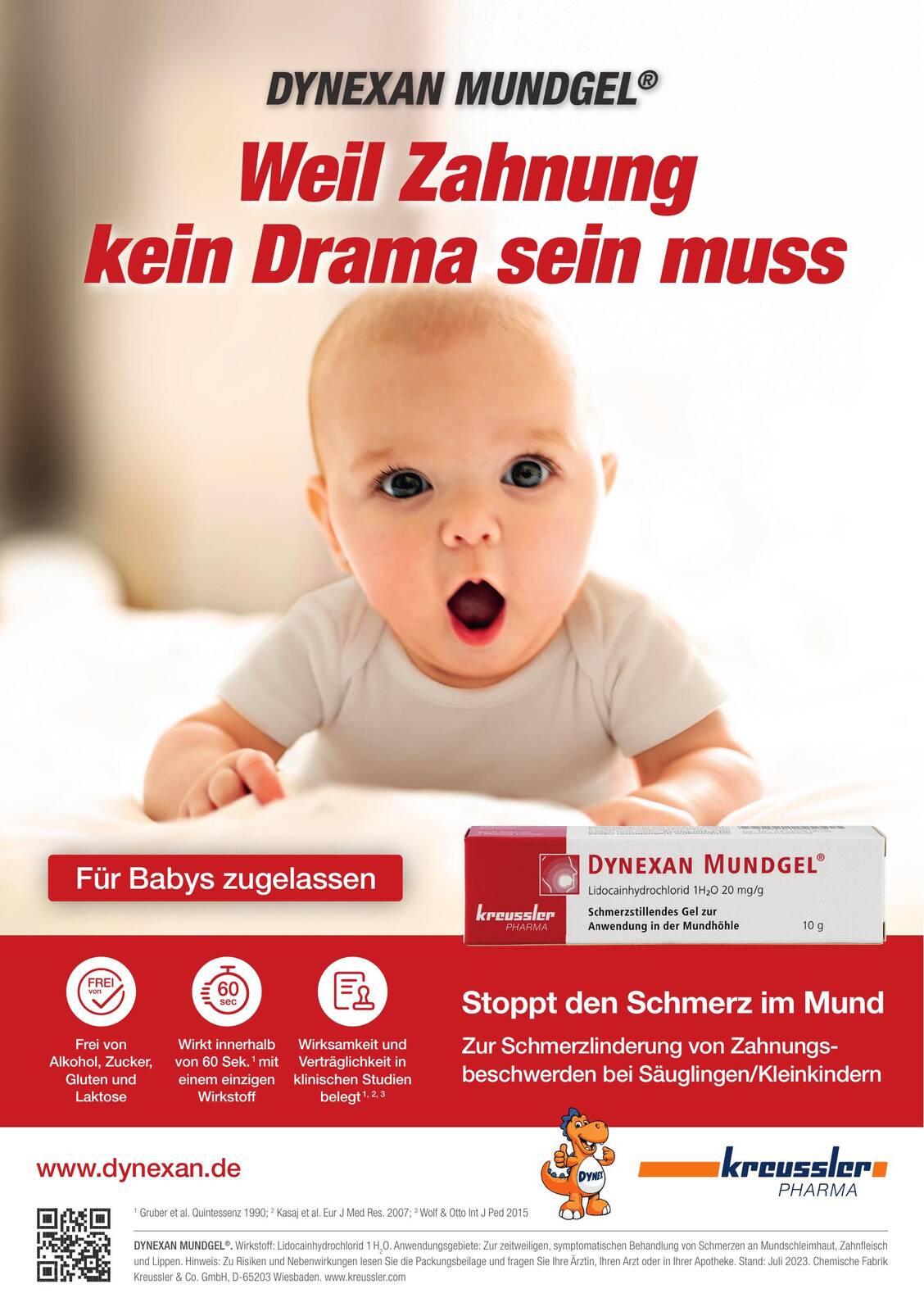 Die Zahnung bei Babys ist für viele junge Eltern ein Anlass, die Apotheke aufzusuchen und gezielt nach einer wirksamen Hilfe bei Schmerzen im Mund zu fragen. Dynexan Mundgel® bietet hier eine bewährte und schnelle Unterstützung. Mit der Dynexan Mundgel Baby-Aktion 2026 macht Kreussler Pharma erneut aufmerksamkeitsstark auf das Thema Zahnen in Apotheken aufmerksam. Ziel der Aktion ist es, junge Eltern emotional anzusprechen und die Sichtbarkeit in der Offizin zu erhöhen. Apotheken können kostenfrei ein Deko-Paket (solange der Vorrat reicht) bestehend aus zwei Postern, einem Plakataufsteller, HV-Display sowie einem beliebten Dynex-Kuscheltier beziehen. Die Aktion steht unter dem Motto: „Weil Zahnung kein Drama sein muss!“. Zusätzlich profitieren teilnehmende Apotheken von einem Aktionspreis. /