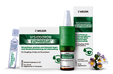 Visiodoron Euphrasia® Augentropfen in Monodosen Wirkstoff: Euphrasia 3c D3 Zusammensetzung: 1 Einzeldosisbehältnis enthält: Euphrasia 3c Dil. D3 0,4 ml. Sonstige Bestandteile: Natriumchlorid, Natriumcitrat, Citronensäuremonohydrat. Anwendungsgebiete gemäß der anthroposophischen Menschen- und Naturerkenntnis. Dazu gehören: Katarrhalische Entzündungen am Auge, die mit vermehrter Tränenabsonderung einhergehen; Lidödeme, vor allem auf allergischer Grundlage. Gegenanzeigen: Allergie gegen Euphrasia (Augentrost) oder einen der sonstigen Bestandteile. Nebenwirkungen: Es können Reizungen der Augen auftreten wie z. B. Brennen, Rötung, Juckreiz, Schwellung oder vermehrter Tränenfluss (Häufigkeit unbekannt).