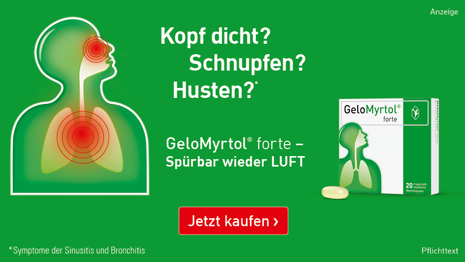Kribbelt’s in der Nase, sollten wir also schnell handeln, um der Erkältung entgegenzuwirken und unsere Atemwege zu schützen. ELOM-080, der pflanzliche Wirkstoff in GeloMyrtol® forte, hilft dabei, die geschwächten Zilien auf Trab zu bringen und so die Selbstreinigung der Atemwege zu aktivieren. Zudem löst ELOM-080 den zähen Schleim und lindert sogar das Postnasal-Drip-Syndrom. Das Risiko für eine Infektausweitung wird minimiert.