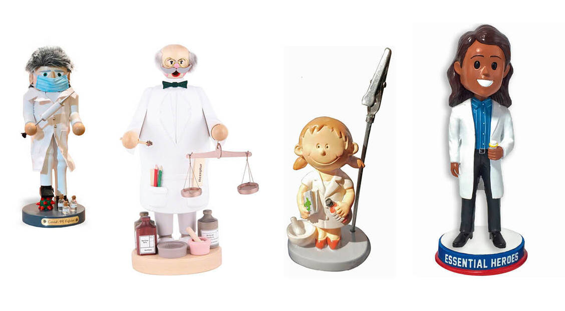 Zugegeben: Apotheker sind vielen Menschen als Heilberufler nicht so präsent wie Ärzte oder Krankenschwestern – zumindest bis zum Beginn der Covid-19-Pandemie war das so. Seitdem zählen sie zu den Alltagshelden. Die Firma Playmobil hat den Pharmazeuten bereits im vergangenen Jahr eine neue Figur gewidmet, natürlich mit Desinfektionstuch, Salbentube, Buch und Mörser. In einer anderen Darstellung wiederum zeigt sich ein Apotheker kämpferisch, wenn er das Coronavirus mit dem Fuß zertritt.