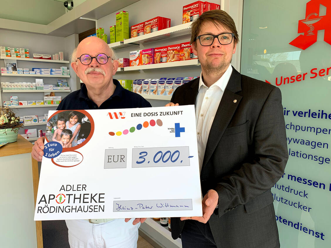 Allein 14.500 Euro kamen im März dieses Jahres rund um den siebten Westfälisch-Lippischen Apothekertag zusammen. Dort überreichte die Apotheker- und Ärztebank einen Spendenscheck in Höhe von 3.000 Euro. Genau die gleiche Summe spendete im Frühjahr auch AKWL-Vorstandsmitglied Heinz-Peter Wittmann, Apothekeninhaber aus Rödinghausen.