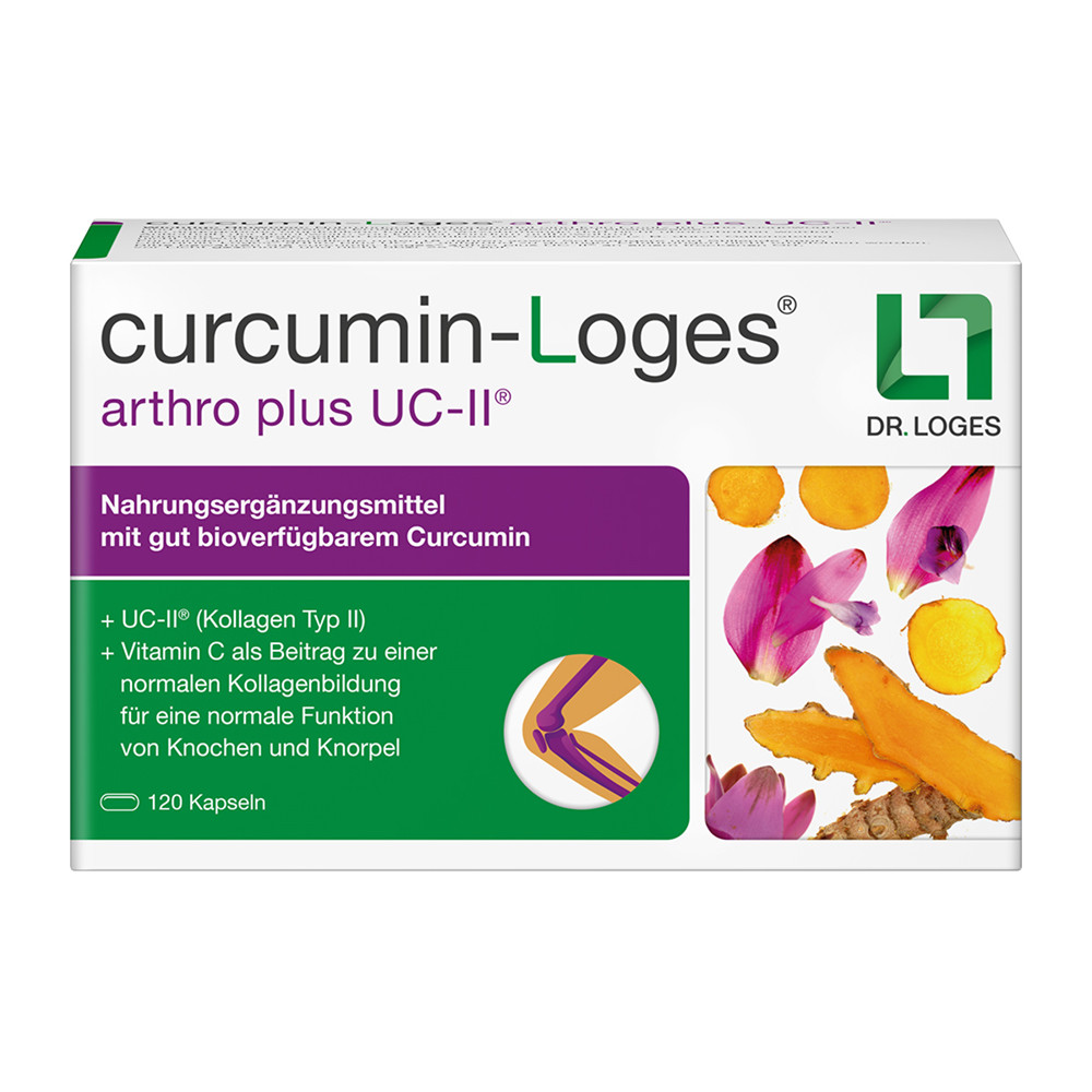 Gelenkbeschwerden liegen häufig Veränderungen des Gelenkknorpels zugrunde, die insbesondere Knie- und Hüftgelenke betreffen und mit zunehmendem Alter fortschreiten können. Wichtig ist eine gezielte Versorgung mit spezifischen Nährstoffen, die zur normalen Kollagenbildung beitragen können. curcumin-Loges® arthro plus UC-II® mit Vitamin C setzt genau hier an. Die einzigartige Kombination verbindet ausgewählte Inhaltsstoffe für eine gezielte Unterstützung von Knorpel und Knochen: Curcumin verfügt durch die verwendete Mizellentechnologie über eine 185-fach höhere Bioverfügbarkeit im Vergleich zu nativen Pulver-Extrakten. UC-II ist ein patentiertes Typ-II-Kollagen und trägt dazu bei, im Knorpel arthrotische Abbauprozesse zu hemmen und die Regeneration zu fördern. Vitamin C trägt zur Bildung von Kollagen bei. Das apothekenexklusive Nahrungsergänzungsmittel ist lactose-, gluten- und zuckerfrei. /