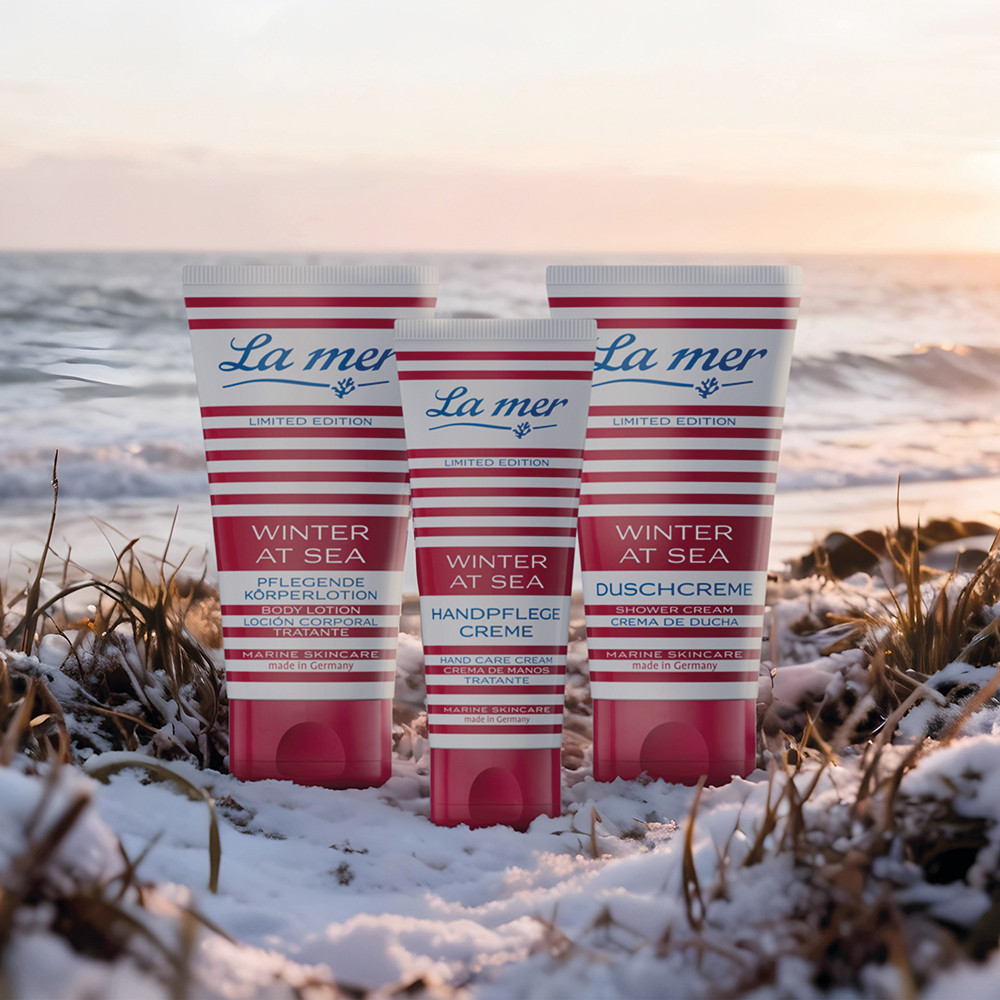Wenn draußen Wind und Kälte das Gesicht streifen, sehnt sich die Haut nach Schutz, Pflege und Wärme. Mit der limitierten Pflegelinie „Winter at Sea“ lädt La mer zu einer maritimen Auszeit ein – inspiriert von der winterlichen Ruhe der Nordsee. Der Duft nach Orange und Vanille umhüllt die Sinne, während hochwertige maritime Inhaltsstoffe intensive Feuchtigkeit und Wohlbefinden schenken. Herzstück aller Produkte ist der exklusive Meeresschlick-Extrakt aus der Nordsee. Er versorgt die Haut nachhaltig mit Feuchtigkeit, stärkt ihre Schutzbarriere und sorgt für ein gepflegtes Hautgefühl – selbst bei trockener Winterluft. Ergänzt durch natürliche Öle und Sheabutter entsteht eine Pflegelinie, die Haut und Sinne gleichermaßen verwöhnt. Die Serie umfasst