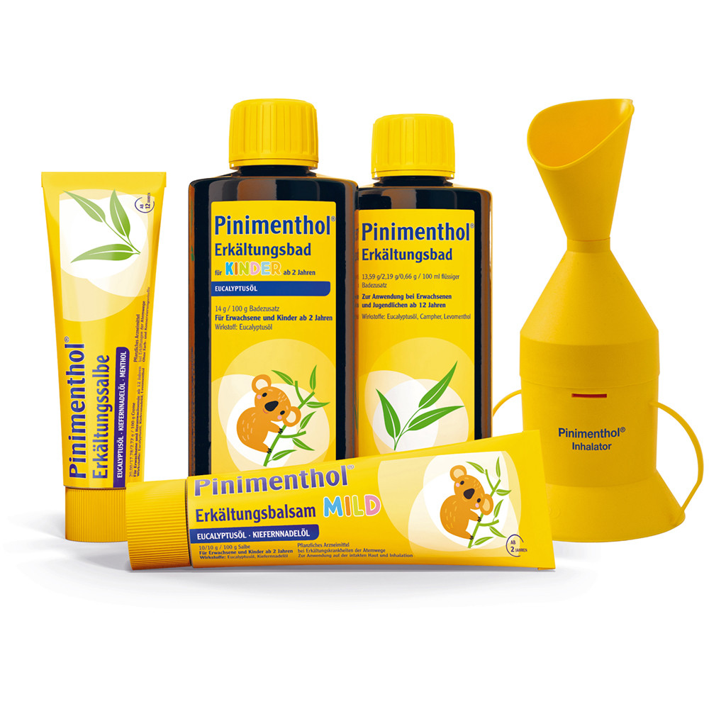 Ätherische Öle bieten weit mehr als ein angenehmes Dufterlebnis. Viele von ihnen haben eine große und vielfältige therapeutische Wirkungsbreite. Dank ihrer geringen Molekülgröße sowie der guten Fettlöslichkeit können sie tief ins Gewebe vordringen, weshalb sie beispielsweise als Zusatz in Bädern oder zum Einreiben auf Brust und Rücken sehr gut geeignet sind. Für die Behandlung von Erkältungskrankheiten eignen sich ausgewählte ätherische Öle in einer speziellen Kombination besonders gut: Das reich an 1,8-Cineol haltige Eukalyptusöl hat entzündungshemmende und antimikrobielle Eigenschaften; es wirkt schleimlösend und erleichtert das Durchatmen, während Kiefernnadel- und Pfefferminzöl die Bronchien entkrampfen und die Durchblutung fördern. Campher mit seinem markanten Duft befreit zudem die Atemwege von zähem Schleim. Ob als Einreibung, Badezusatz oder zur Inhalation: Produkte wie Pinimenthol® nutzen die natürlichen Kräfte und die hohe Flüchtigkeit ätherischer Öle. Sie lindern klassische Erkältungssymptome wirkungsvoll auf sanfte Weise. /
