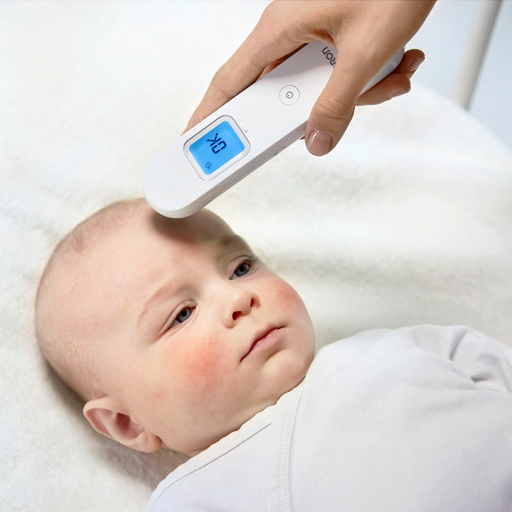 Das Stirnthermometer Gentle Temp 730 überzeugt durch seine fortschrittliche Distanzsensor-Technologie, die eine korrekte Positionierung sicherstellt und innerhalb von nur einer Sekunde präzise Messwerte liefert – ganz ohne Hautkontakt. Die intuitive Einhandbedienung, das beleuchtete Display sowie die Möglichkeit, bis zu 30 Messwerte zu speichern, machen das Gerät besonders anwenderfreundlich. Zusätzlich kann auch die Temperatur von Flüssigkeiten wie Babyfläschchen gemessen werden – hygienisch und stressfrei.