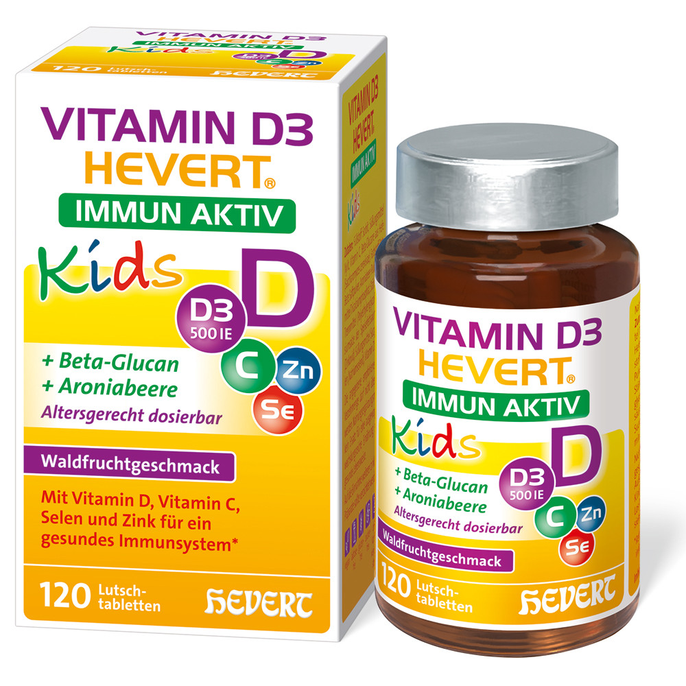 Hevert-Arzneimittel erweitert erneut sein umfangreiches Vitamin-D-Portfolio. Nachdem im November 2024 Vitamin D3 Hevert 2000 IE Immun Aktiv optimiert wurde, gibt es seit dem 15. Oktober 2025 auch ein Kinder-Immunpräparat in Form einer leckeren Lutschtablette mit Waldfruchtgeschmack: Vitamin D3 Hevert Immun Aktiv Kids. Jede Lutschtablette enthält essenzielle, für die Versorgung des Immunsystems relevante Vitalstoffe: 500 IE veganes Vitamin D3 aus Flechten, 40 mg Vitamin C, 15 µg Selen und 2,5 mg Zink. Außerdem sind 20 mg Aroniabeer-Pulver und 30 mg Beta-Glucan (Yestimun®) enthalten, das als Immun-Aktivator fungiert. Die Lutschtabletten können altersgerecht individuell dosiert werden und schmecken sowohl Kindern ab vier Jahre als auch Erwachsenen. Empfohlen werden für Kinder ab vier Jahren zwei Lutschtabletten und für Erwachsene sowie Kinder ab elf Jahren vier Lutschtabletten täglich. Das Präparat ist in einem nachhaltigen Apothekerglas mit 120 Lutschtabletten apothekenexklusiv erhältlich und wird in Deutschland hergestellt. /
