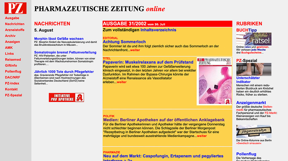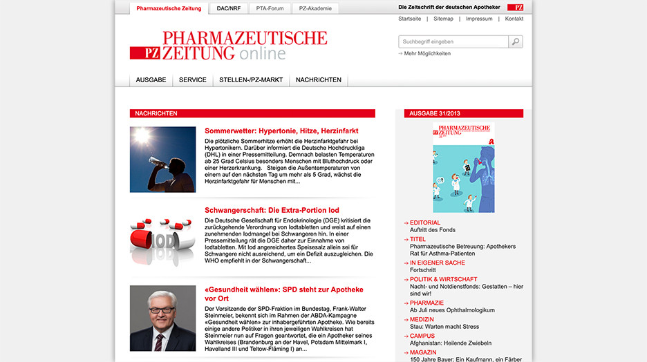 Das alles lässt sich natürlich nicht mehr auf einem DIN-A-4-Blatt planen. Mit von der Partie sind heute Web-Konzept- und Designagentur, Suchmaschinen-Optimierer und Programmierer. Zwei miteinander eng verzahnte Redaktionssysteme kommen zum Einsatz und unsere Websites sind optimiert für unterschiedliche Endgeräte. Allein für PZ-online nutzen wir sieben verschiedene Server in drei europäischen Ländern, um unsere Inhalte schnell und zuverlässig verfügbar zu machen – zu jeder Zeit, an jedem Ort.