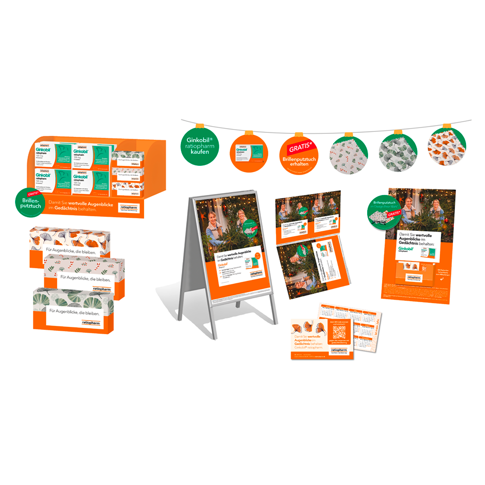 Zur Weihnachtszeit stellt ratiopharm ein umfassendes Servicepaket bereit, das Apotheken bei der Kundenansprache unterstützt. Die Aktionsmaterialien unter dem Motto „Damit Sie wertvolle Augenblicke im Gedächtnis behalten“ bieten vielfältige Möglichkeiten, das Thema Gedächtnis in der Offizin in den Fokus zu rücken. Ein zentraler Bestandteil des Pakets ist ein praktisches Give-away für die Kundschaft: Beim Erwerb einer Packung Ginkobil® ratiopharm erhalten diese ein hochwertiges Brillenputztuch, damit Augenblicke immer „klar” wahrgenommen und im Kopf behalten werden. Jedes Servicepaket enthält 25 Brillenputztücher, die in drei unterschiedlichen Designs verfügbar sind, sowie 50 kostenlose Kalender-Scheckkarten, die an die Kundinnen und Kunden weitergegeben werden können. Als ansprechende Präsentation in der Offizin rückt ein HV-Aufsteller und ein Sichtwahlelement Ginkobil ratiopharm ins Blickfeld. Eine flexible Girlande unterstreicht zusätzlich die weihnachtliche Atmosphäre. Ergänzend dazu ist im Paket ein Gehwegposter im DIN-A1-Format enthalten, das als Gehwegstopper oder im Schaufenster eingesetzt werden kann. Bestellt werden kann das Servicepaket über den ratiopharm-Außendienst. Solange der Vorrat reicht. /