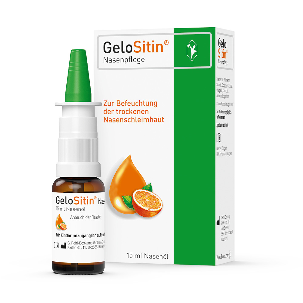 Der Pollenflug ist in vollem Gange und antiallergische und abschwellende Nasensprays sind der tägliche Begleiter vieler Menschen mit Allergien. Doch diese trocknen, neben der allergischen Reaktion selbst, die Nasenschleimhaut aus. Erste Anzeichen sind ein unangenehmes Trockenheitsgefühl und Jucken, später kommt das Gefühl einer ständig verstopften Nase hinzu. Während der Allergiesaison ist GeloSitin® Nasenpflege eine gute Empfehlung als Ergänzung zu antiallergischen und abschwellenden Nasensprays. Das Nasenöl hilft bei der Regeneration und Pflege der Nasenschleimhaut. GeloSitin enthält hochreines Sesamöl, das sich mit jedem Sprühstoß als feiner Nebel schützend auf die Nasenschleimhaut legt, dort anhaftet und so ihr weiteres Austrocknen verhindert. Bei Bedarf können bis zu fünfmal täglich ein bis zwei kräftige Sprühstöße in jedes Nasenloch gesprüht werden. Es ist über einen langen Zeitraum anwendbar, sehr gut verträglich und auch für Schwangere, Stillende und Kinder ab drei Jahren geeignet. /