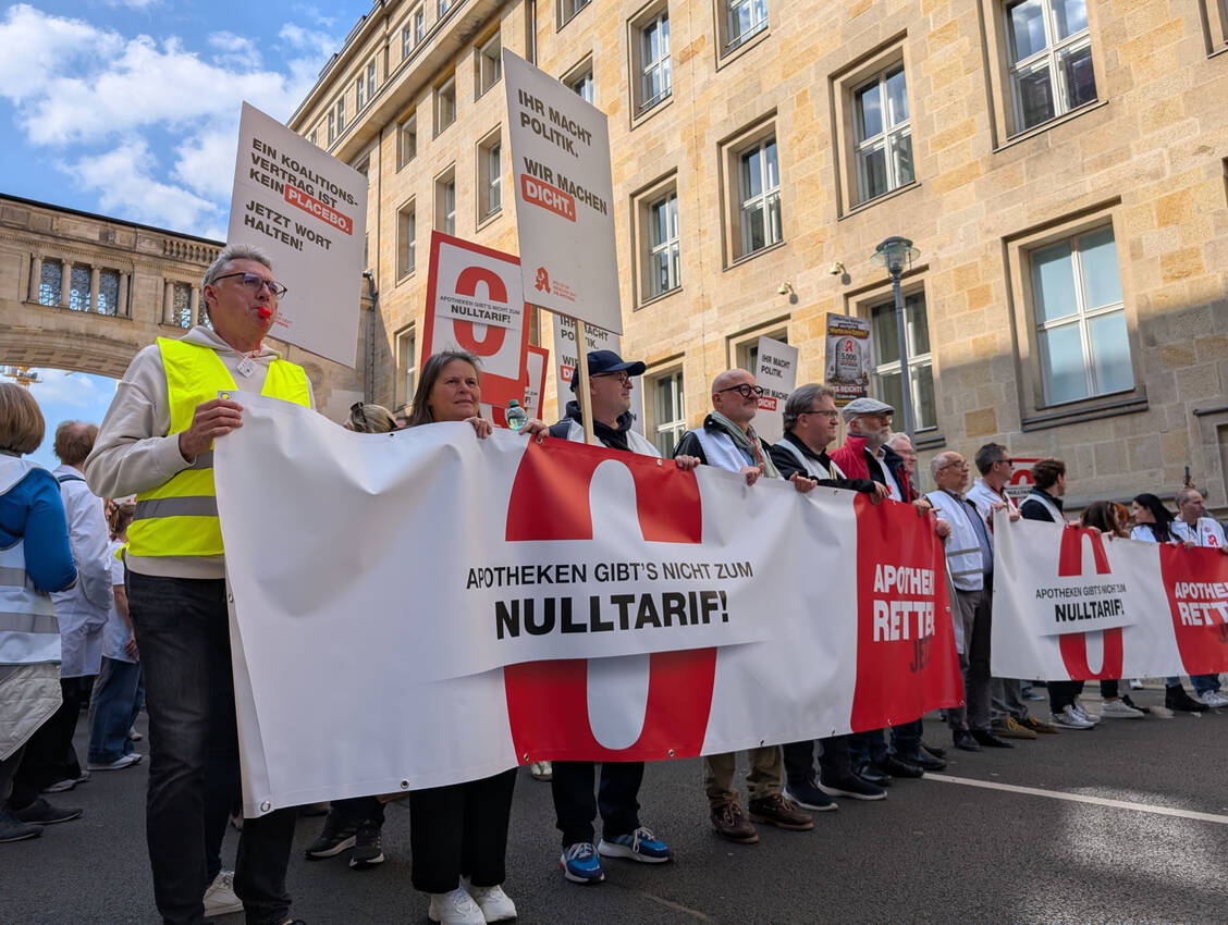 Mit dem heutigen Protest fordern die Apotheken die Bundesregierung und die Regierungsfraktionen dazu auf, die im Koalitionsvertrag vereinbarte Fixumserhöhung umzusetzen. Dieses liegt aktuell bei 8,35 Euro und soll auf 9,50 Euro erhöht werden. Gesundheitsministerin Nina Warken (CDU) hat mehrfach betont, dass die Erhöhung umgesetzt wird.