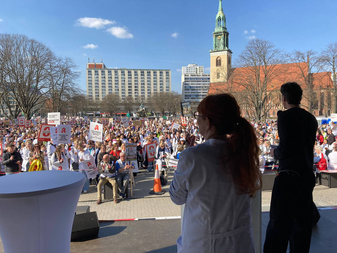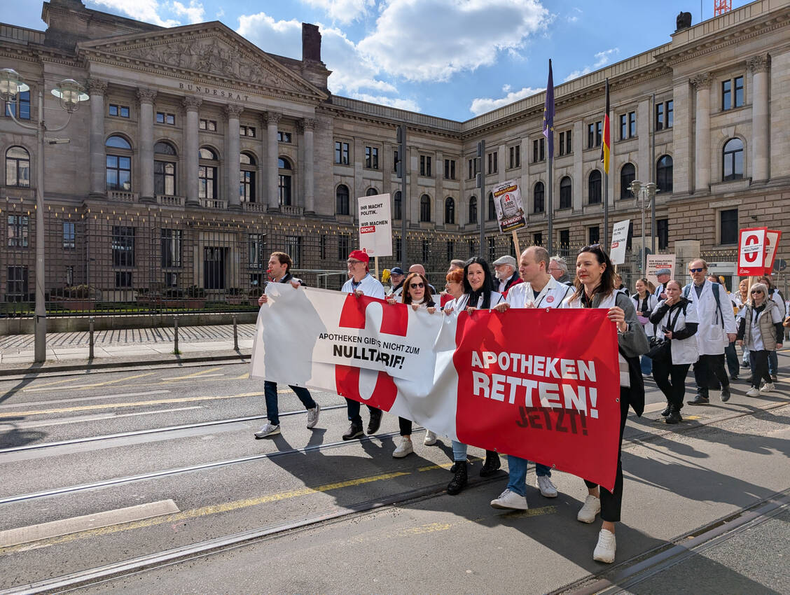 Besonders laut waren die Apothekerinnen und Apotheker vor dem Bundesrat und dem Gesundheitsministerium (BMG). Die Kundgebung endete am Alexanderplatz. Vor dem Roten Rathaus hielten die Berliner Senatorin für Wissenschaft, Gesundheit und Pflege, Ina Czyborra (SPD), die Vorsitzende des Berliner Apothekervereins, Anke Rüdinger, die Bundesvorsitzende des BVpta, Anja Zierath, sowie die Präsidentin der Apothekerkammer Berlin und Vizepräsidentin der ABDA, Ina Lucas, kurze Statements. Außerdem gab es Videobotschaften, unter anderem von Mario Voigt (CDU), dem Ministerpräsidenten von Thüringen.