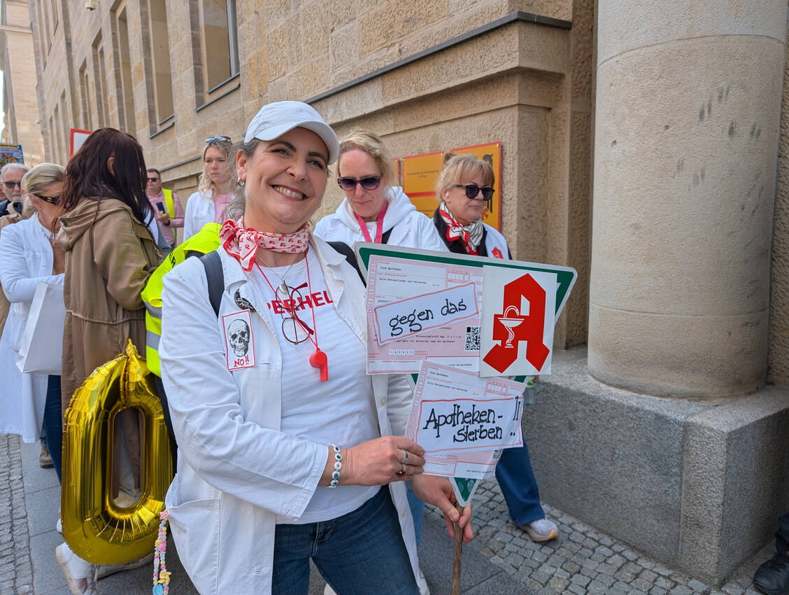 »Früher gab es drei Apotheken im Ort, jetzt sind wir die einzige. Es kann so nicht weitergehen. Für die Kunden wäre es ein schlimmer Schritt, wenn es uns auch nicht mehr gäbe«, sagt Kristina Fliege, Inhaberin der Engel-Apotheke in Artern, Thüringen. »Ich möchte meinem Team ein gutes Gehalt zahlen und in neue Investitionen gehen. Ich bin solidarisch mit allen Apotheken, denen das Wasser bis zum Hals steht. Es reicht«, sagte Michael Kranz, Inhaber der Grünen-Apotheke in Prenzlau, in Brandenburg.