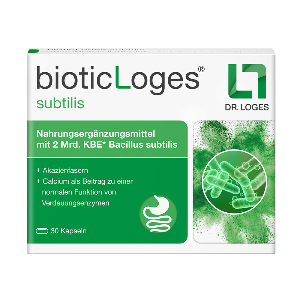 Hormonelle Veränderungen während der Menopause können eine Vielzahl von gastrointestinalen Symptomen verursachen. Für eine gezielte, natürliche Unterstützung des Darms vereint das neue, apothekenexklusive bioticLoges® subtilis von Dr. Loges drei sich perfekt ergänzende Inhaltsstoffe: Bacillus subtilis, Akazienfasern und Calcium.